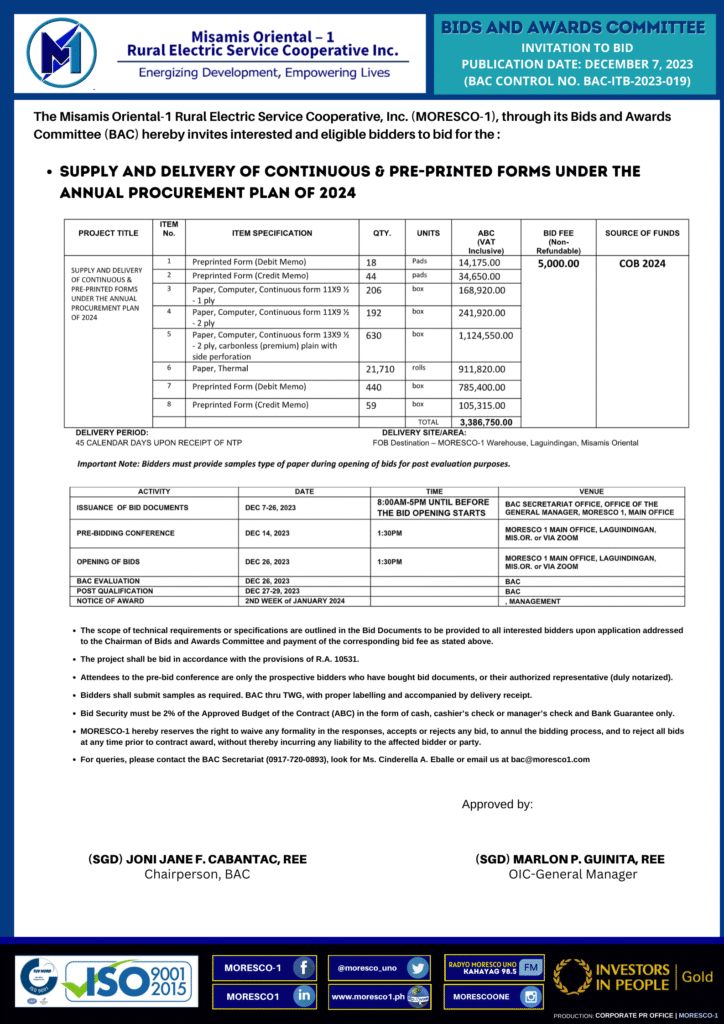 Bids and Awards 2023/Invitations to Bid BAC-ITB-2023-019 CONTINUOUS & PRE-PRINTED FORM December 7, 2023November 14, 2025 admin