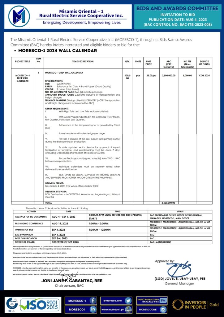 Bids and Awards 2023/Invitations to Bid BAC CONTROL NO. BAC-ITB-2023-008 – 2024 M1 WALL CALENDARS August 4, 2023November 14, 2025 admin