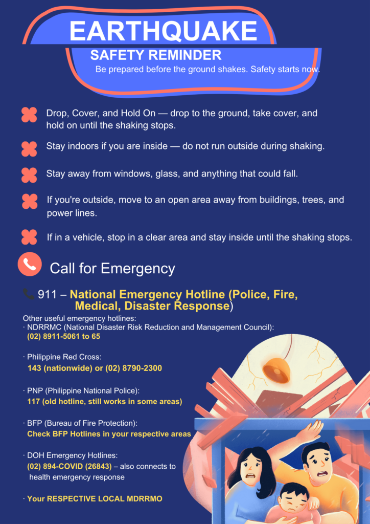 In the Philippines, the main emergency hotline you can call during an earthquake or any other disaster is: