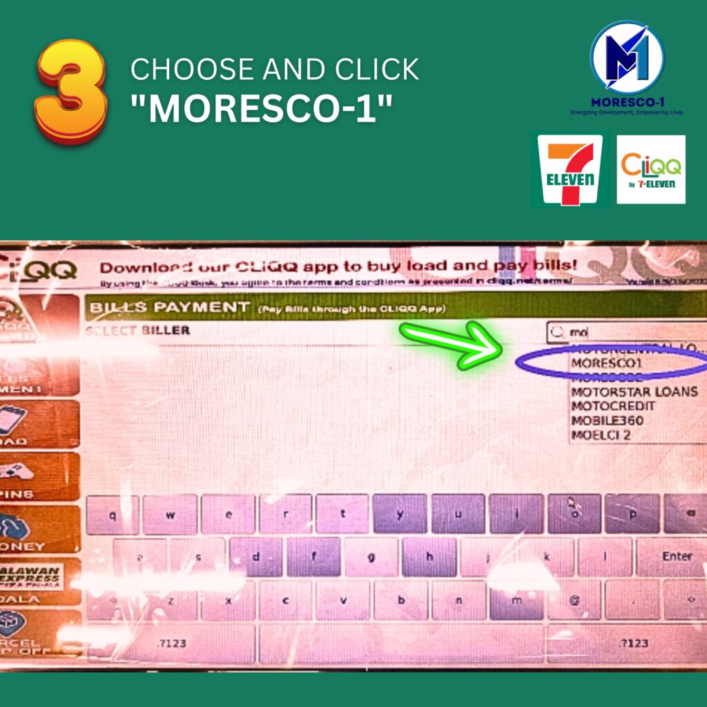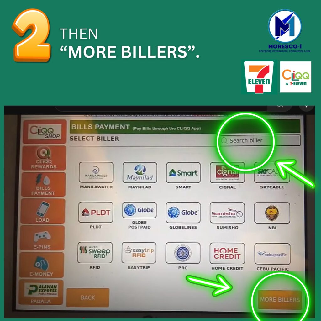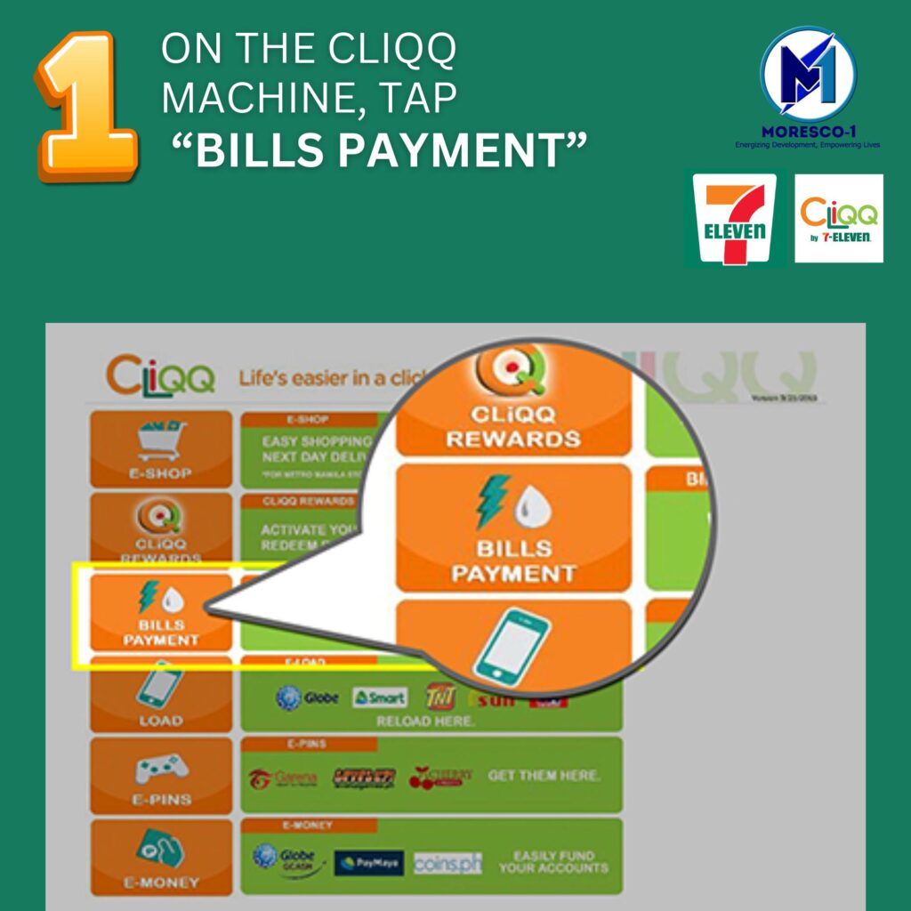You can now settle your MORESCO-1 power bills easily at any 7-Eleven store nationwide using the CLiQQ Kiosk.